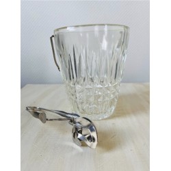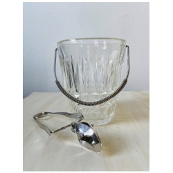 Belle élégance et simplicité pour ce seau à glaçons vintage années 1960 / 70 en verre ciselé avec une jolie anse en métal et sa pince en métal chromé
