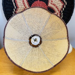 Superbe et originale suspension bicolore en rotin et raphia des années 1960 1970 forme fleur. En très bon état de conservation, elle donnera une touche vintage à votre décoration et se mariera parfaitement avec les couleurs et matières naturelles pour un intérieur ultra tendance. Du plus bel effet une fois installée. Elle est électrifiée et fonctionne parfaitement. Origine France (Centre Val de Loire). Dimensions (cm) : Hauteur 23 abat-jour seul et 64 cm avec le kit électrique x Largeur 33. Ampoule à douille vis non fournie. Le kit électrique qui est d'origine peut se changer (Castorama, Leroy Merlin).