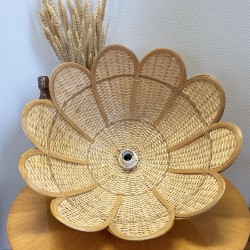 De style Bohème, cette belle suspension en forme de fleur en cannage et rotin des années 1960 1970 donnera une note chaleureuse et poétique à votre décoration.