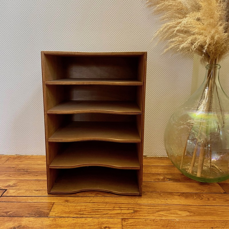 Authentique meuble de tri administratif ancien en pin. Doté de casiers, il sera idéal pour ranger livres, bibelots, documents, revues ou encore la vaisselle ! Il peut être posé tel quel sur le sol ou sur un meuble ou bien encore fixé au mur à l'aide de petites équerres. Il est en parfait état, nettoyé, dans sa belle patine du temps avec juste quelques traces ce qui fait tout son vécu et son authenticité. Ce petit meuble de métier est devenu très rare tel quel. Dimensions : H 50 x L 34 x Profondeur 29.