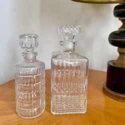 Belle carafe ronde à whisky 1970 en verre ciselé transparent :Très vintage, elle donnera de l'allure à votre table d'apéritif ou sur un bar à alcools.